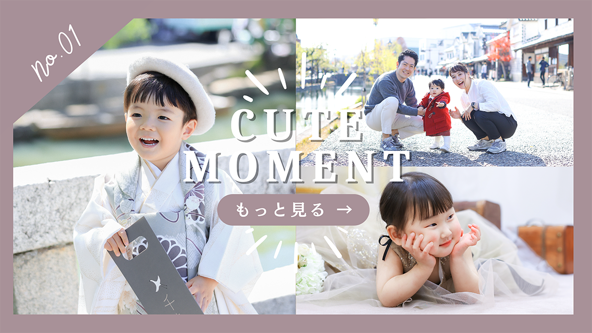 美観地区徒歩0分の立地で他社では実現しにくいお子様のロケーション撮影が叶います お外での撮影は緊張しにくくお散歩しているような感覚でお子様の自然な表情を引き出します “遊び”の延長で撮影をお楽しみください